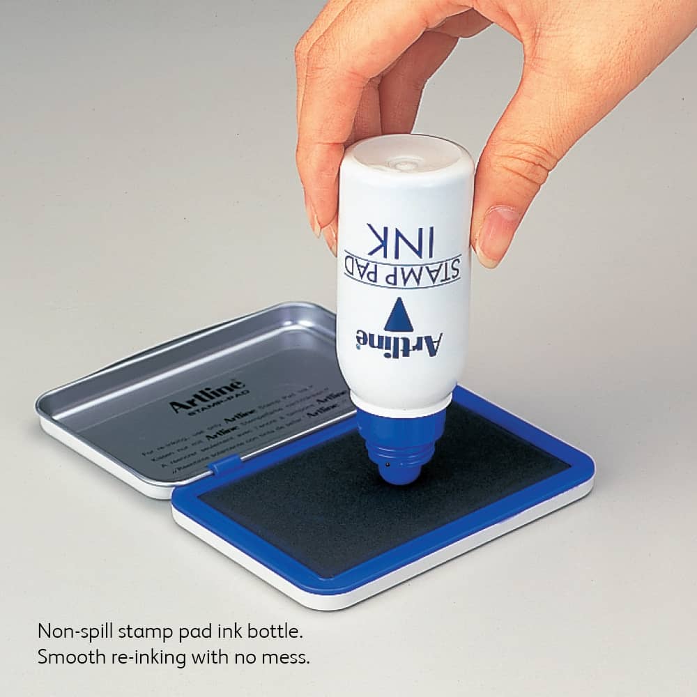 ARTLINE Stamp Pad Ink delivers vibrant, long-lasting impressions for all your stamping projects. This 50ml bottle provides ample supply for frequent use, whether you're crafting, scrapbooking, or handling office tasks. The quick-drying formula ensures clean, sharp marks on paper and cardstock without smudging. Compatible with most standard stamp pads, this professional-grade ink offers consistent color saturation and excellent coverage. Perfect for creative enthusiasts and businesses alike.